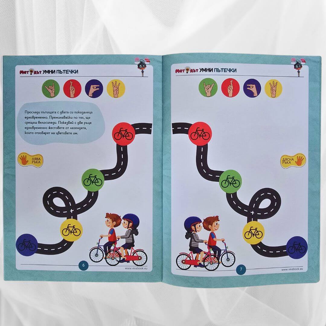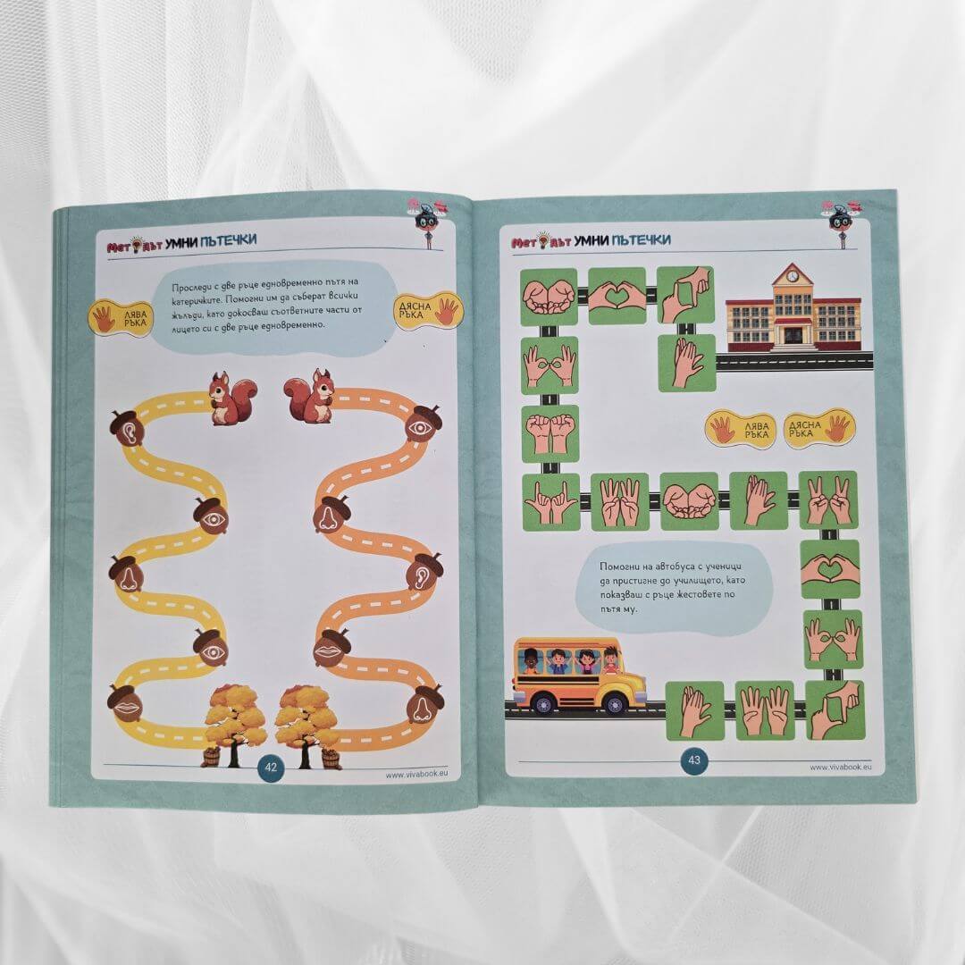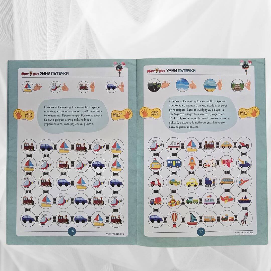 Иновативните сборници “Методът Тук-Там” и “Методът Умни Пътечки” помагат на деца над 4 годишна възраст да подобрят ЗНАЧИТЕЛНО паметта, вниманието, концентрацията и фината си моторика чрез неврогимнастики, без да стоят пред екрани, стимулирайки ги да пораснат като уверени, организирани и успешни хора.