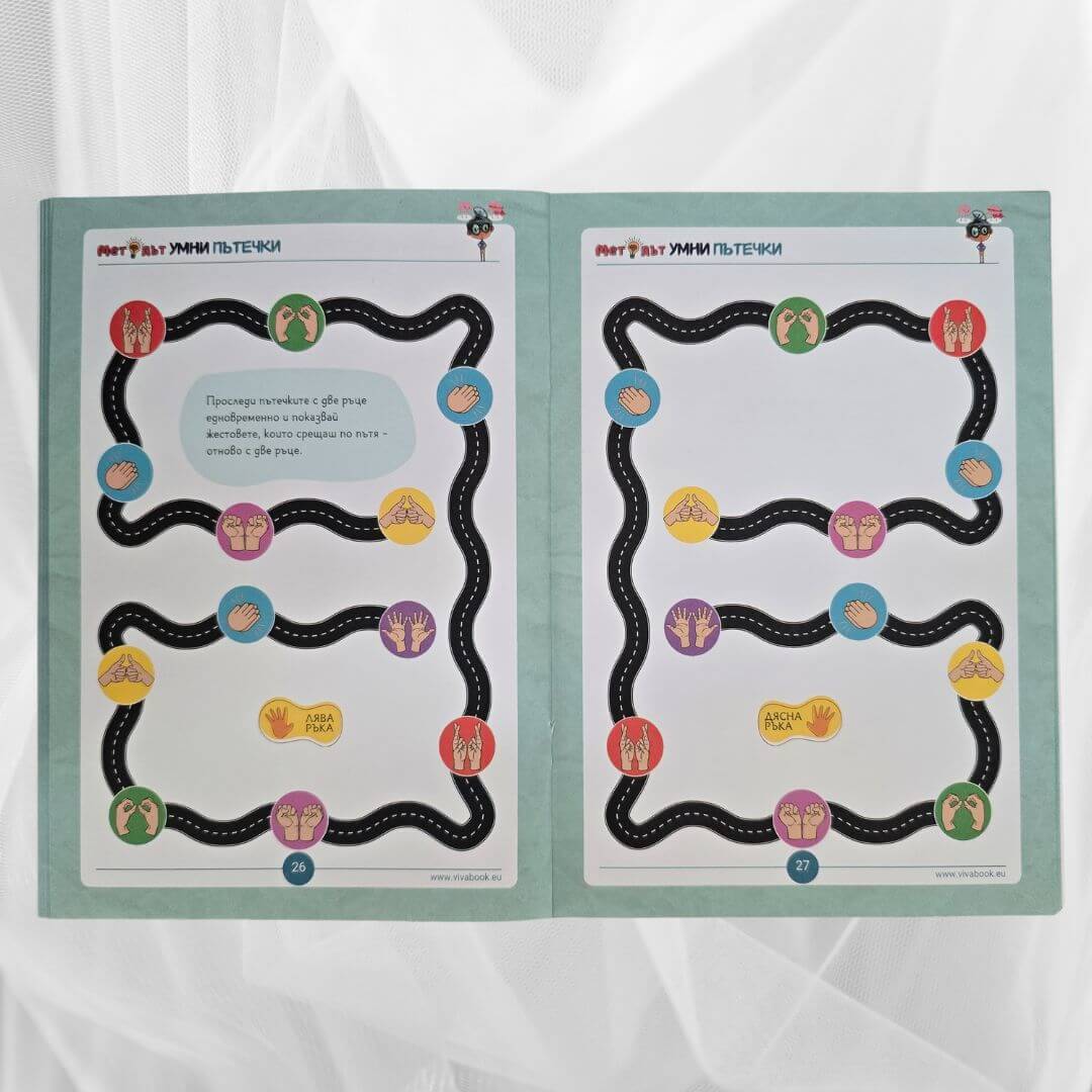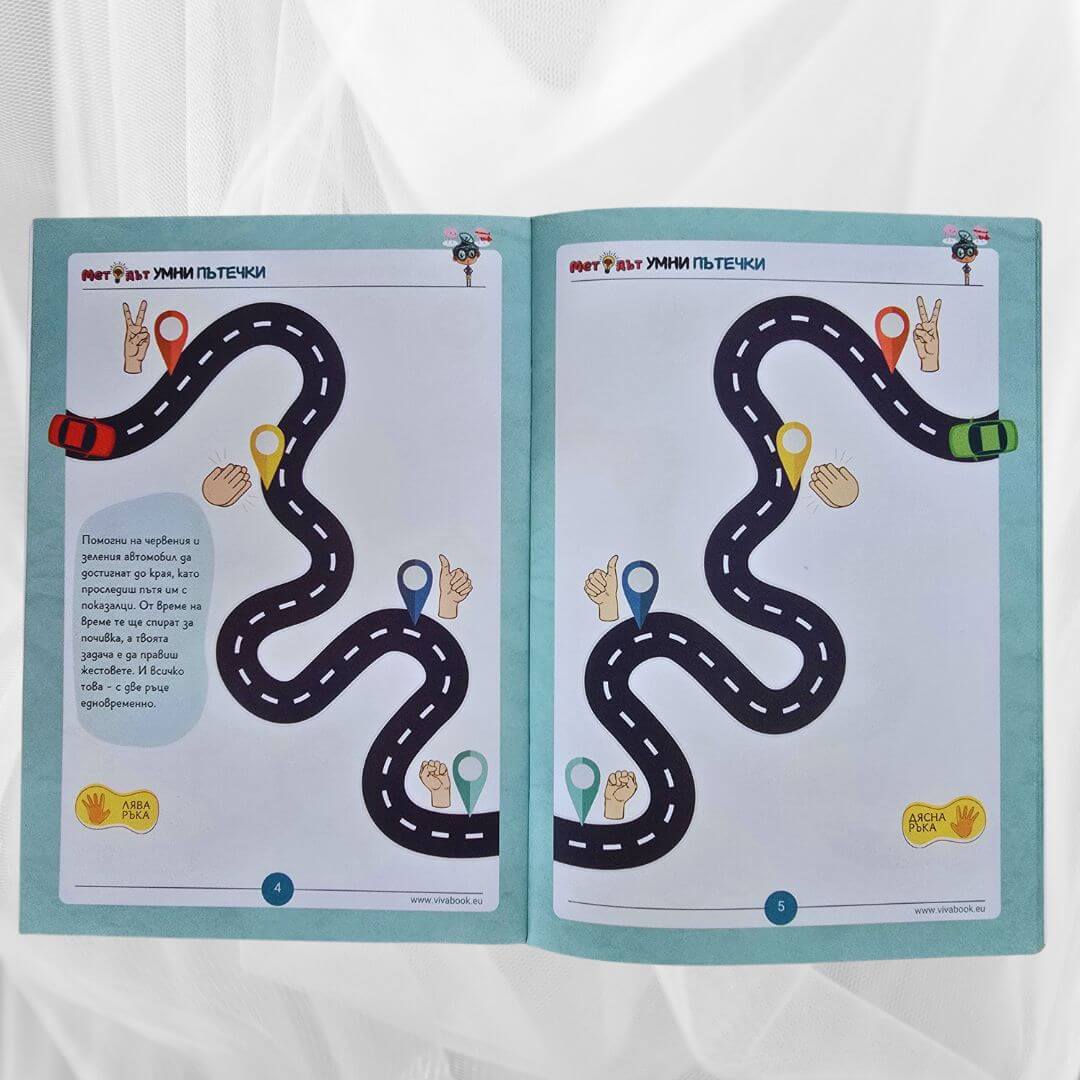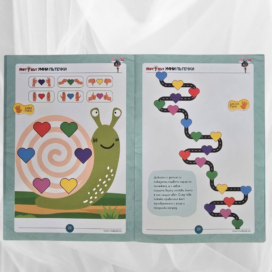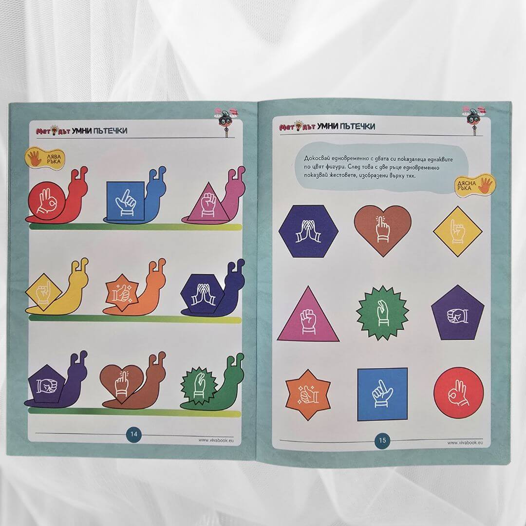- ПОМАГАТ ЗА РАЗВИВАНЕ НА ФИНИТЕ МОТОРНИ УМЕНИЯ. Упражненията в сборниците помагат на детето да подобри прецизността и координацията си чрез едновременното използване и на двете си ръце. Тези мозъчни гимнастики са основополагащи за учебни дейности като писане, рисуване и използване на различни пособия.